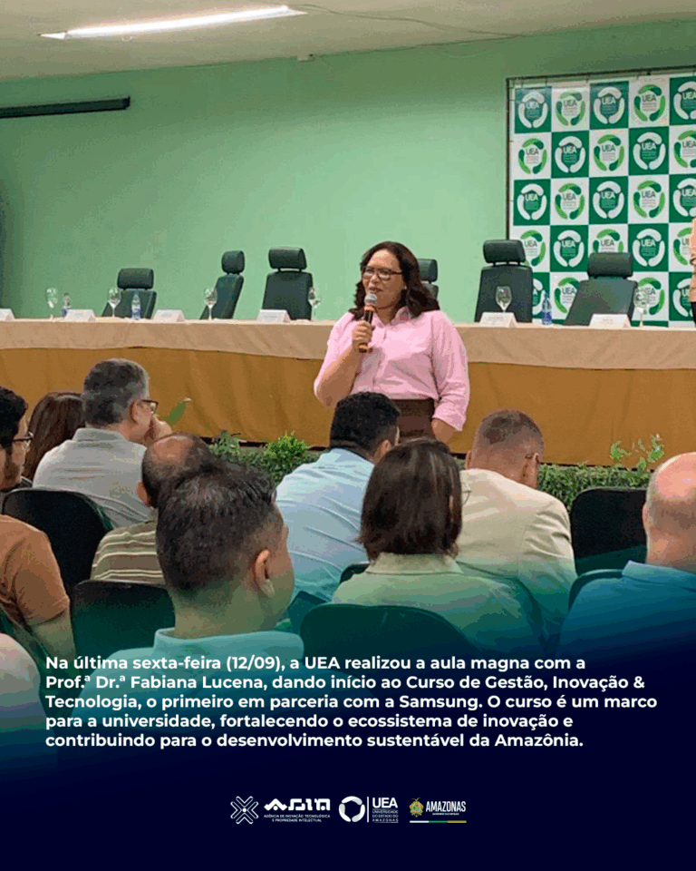 Na última sexta-feira (12/09), o auditório da Universidade do Estado do Amazonas (UEA) recebeu a aula magna ministrada pela Prof.ª Dr.ª Fabiana Lucena, marcando o início do 1º Curso de Gestão, Inovação & Tecnologia, o primeiro realizado em parceria com…